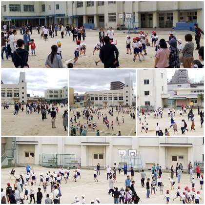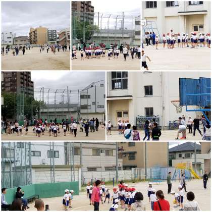 1年生、3年生、5年生が家族と一緒にドッジボールを楽しみました。
