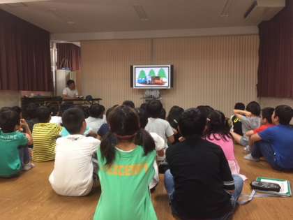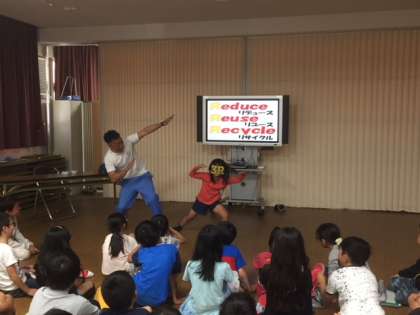 子ども達、とっても真剣に環境局職員の方々の話を聞いています。