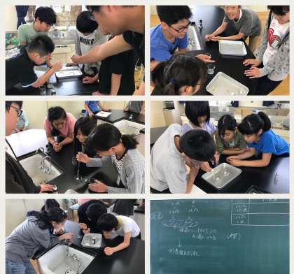 6年2組が、理科のだ液のはたらきを調べる実験をしています。