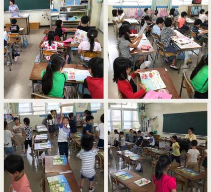 2年1組は、歌詩の中にある色々な国の「ありがとう」を元気よく歌っています。