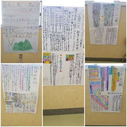 4年生は、国語科で書いた新聞が壁一面掲示されています。