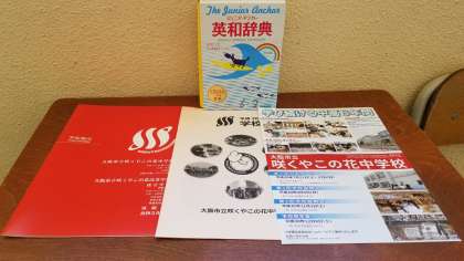 6年生の廊下には、パンフレットや辞書の見本を置いています。