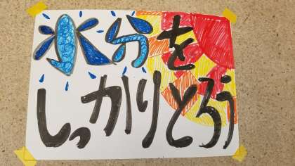 汗拭きタオルとお茶を持ってきて、暑さ対策をしましょう!
