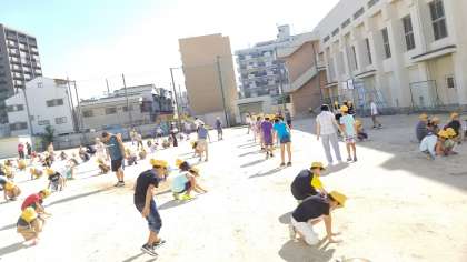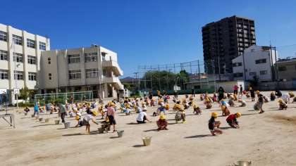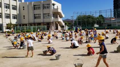 暑い中でしたが、みんなで協力して運動場の石拾いをしました。