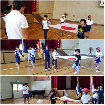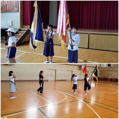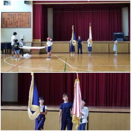 運動会に向けて、20分休みに開会式の練習に取り組んでいます。