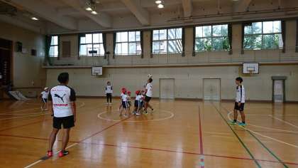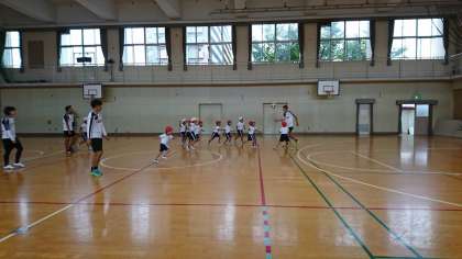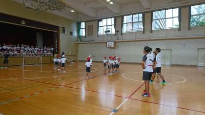 今日は、「セレッソ大阪」の方に講師になっていただき、サッカーの楽しさを教えていただいています。