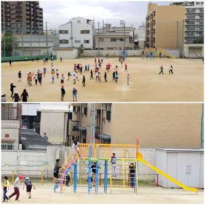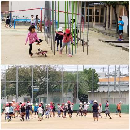 ドッジボールや一輪車、遊具などとっても楽しく遊んでいます。