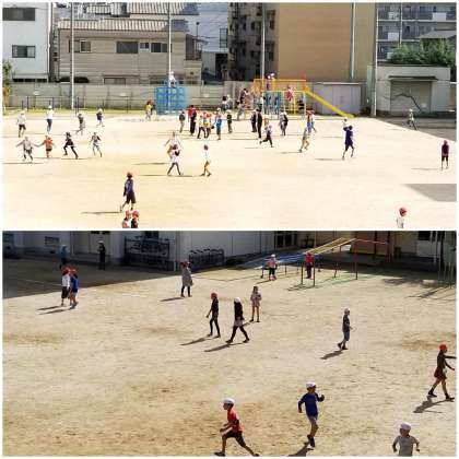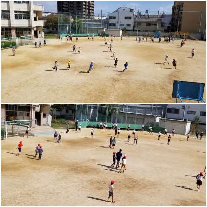 ドッジボールや鬼ごっこ、リレーなど学級ごとに楽しい時間を過ごしています。