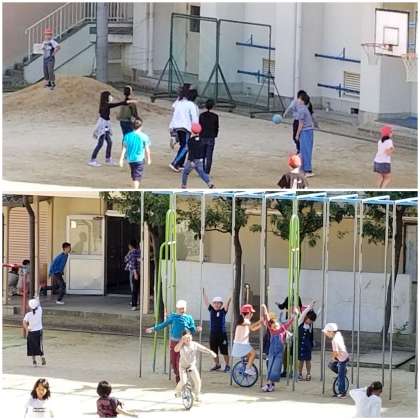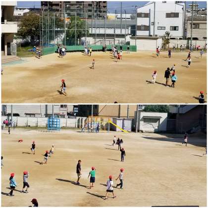 運動場を見ると、元気に遊ぶ子ども達の姿が(*'▽')