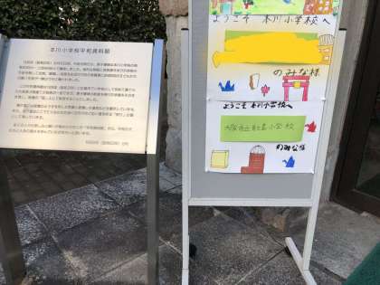 本川小学校の皆さんが、出迎えの看板を用意してくれていました。