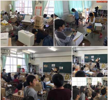 作品展に向けて、段ボールを使った自分だけのお城をつくっています。