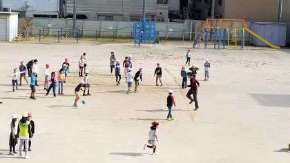 C-NETのマイク先生も子ども達と一緒にドッジボールを楽しんでくれています。