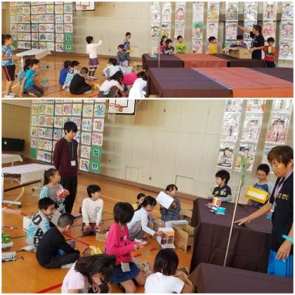 今日は、作品展会場に子ども達が立体作品を展示しています。