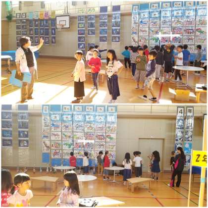 どんな風に展示すると、作品がイキイキするのか担任の先生と相談しながら展示しています。