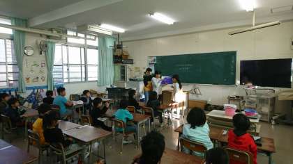 朝の時間に、各学級へ絵本の読み聞かせに出かけています。