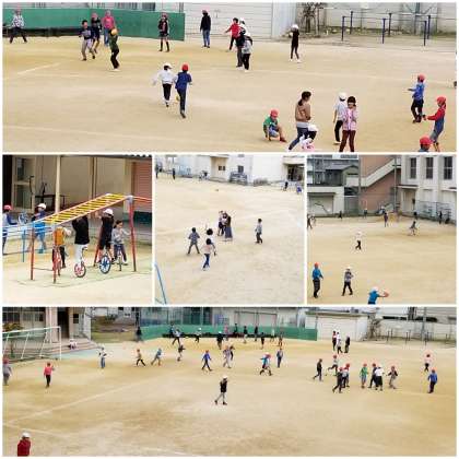 お腹いっぱい給食を食べた後は、元気いっぱいに遊びます(*'▽')