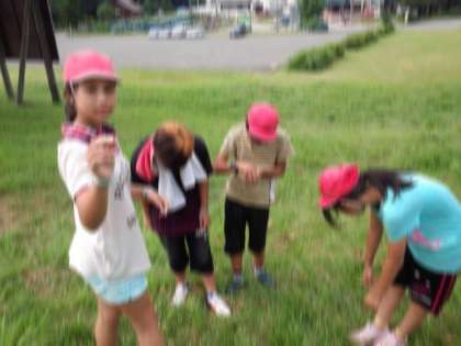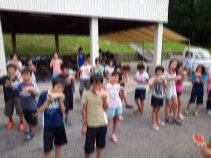 虫を探したり、仲間と遊んだりした高原遊び!その後、みんなでスイカを食べました!