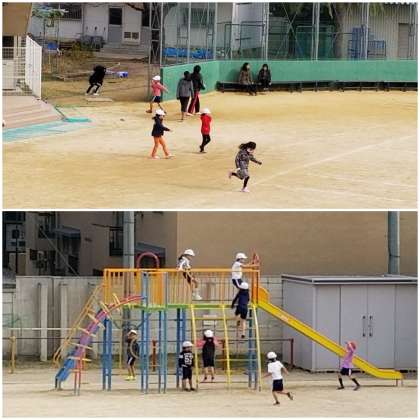そんな中、子ども達は運動場で遊んだり写真を選んだり、思い思いに過ごしています。