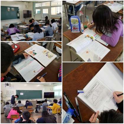 5年生は、課題について自分で考えるだけでなく、友達と相談したり話し合ったりしながら解決していっています。