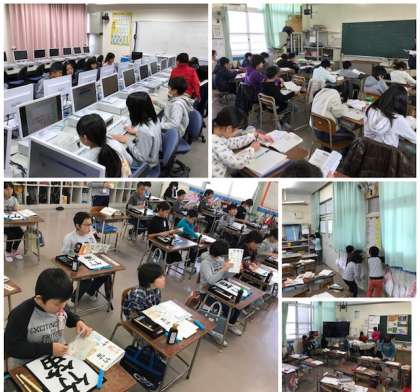 4年1組は、習字で「竹笛」という字を習っています。とめやはねに注意して、丁寧に書きます。