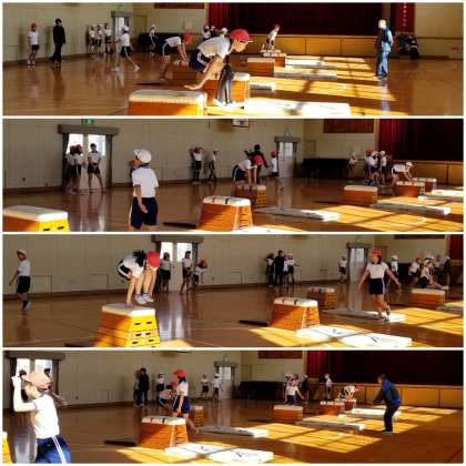 自分で何段跳ぶのかを選択し、「かかえこみとび」の練習をしています。