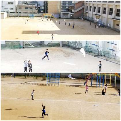 コツをつかんだ子どもは、走らなくとも空高く凧をあげています。