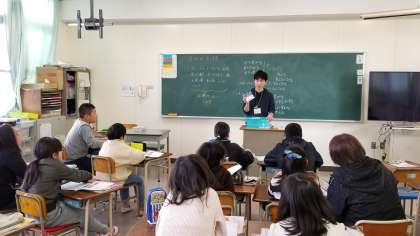 1組担任が、2組で「理科」の学習をしています。
