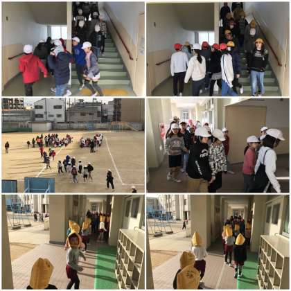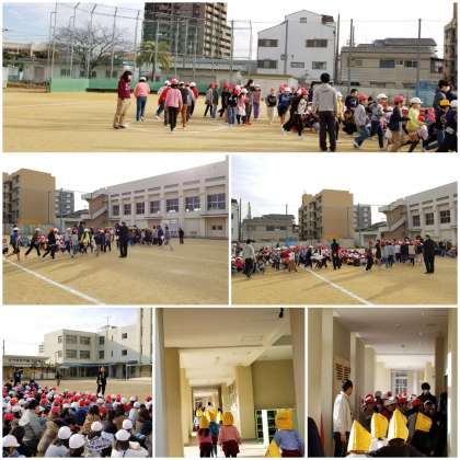 子ども達と野里幼稚園の園児さんと一緒に避難訓練を行いました。