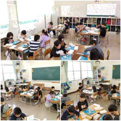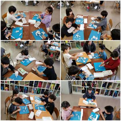 友だちや先生に、作品についてお話ししながら楽しく活動しています。