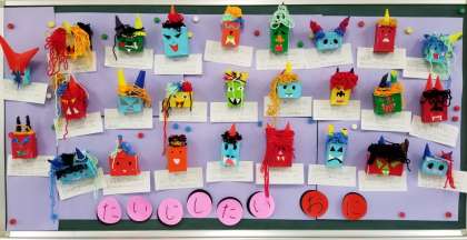 2年生の教室には、「節分」の日に退治したいオニが掲示されています。