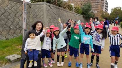 今日は、歌島小学校のアイドル「しんちゃん」も早朝から応援に来てくれました。