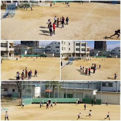 ぽかぽか陽気のなか、子ども達はリレーをしたりドッジボールをしたり楽しんでいます。
