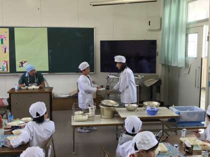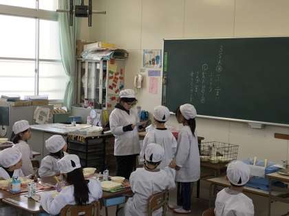 給食中に、2月の清潔調べ(爪は短く切っているか。清潔なハンカチを持っているか。)の結果発表がありました。