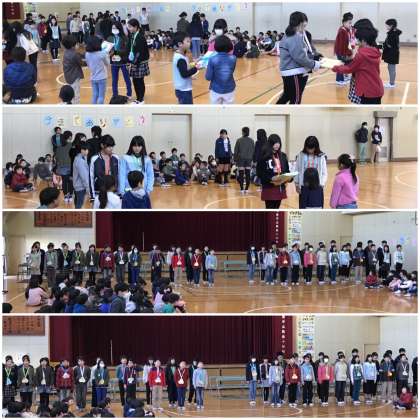 6年生からは、全校に手縫いのぞうきんがプレゼントされました。