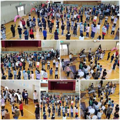 4年生の合奏「Love so sweet」にあわせて6年生が退場します。