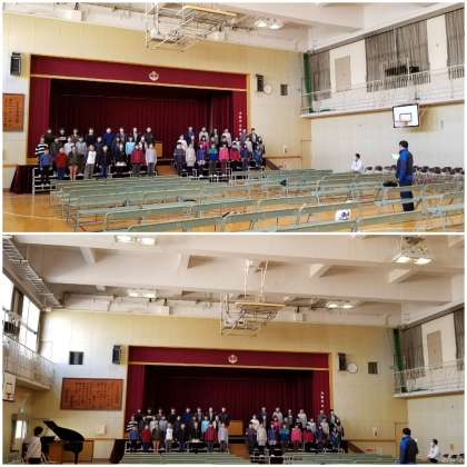 講堂での練習を始めています。