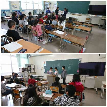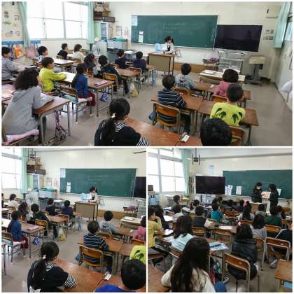 今日の朝、図書委員会の児童が各学級で「本の紹介」をしました。