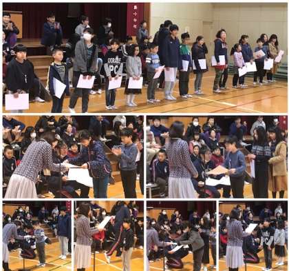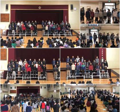 今日の音楽集会は、5,6年生が卒業式で歌う歌を、全校生徒の前で歌いました。