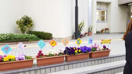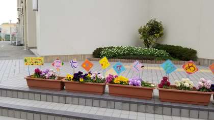 玄関では、飼育栽培委員会の子ども達が作ったメッセージカードが掲示されています。