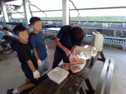 班で野菜を切る係、火をおこす係と役割を決めて作っています。