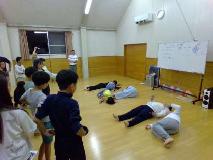 雨、雷注意報のためナイトハイクが室内オリエンテーリングに変更になりました。