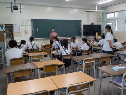 本番の放送に向けて、アナウンスの練習。毎日の全校放送をしているおかげで、皆とても上手です。