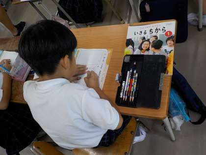 「うさぎ」から「おおかみ」にお手紙を書く場面では、こわいと思っていたおおかみの変容に気づき、「ありがとう」との感謝の気持ちを書き表すことができていました。