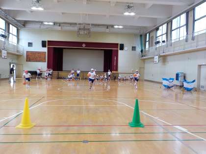 ボールリレーの場面です。運動会のリレーでも見せてくれた高学年の快走です。