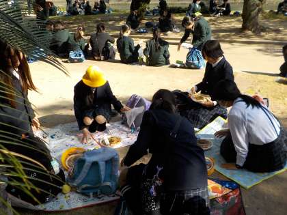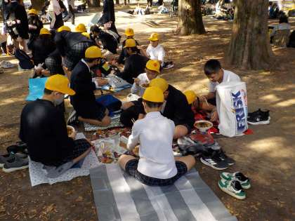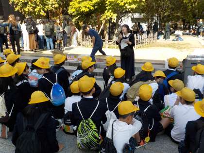 平和の鐘がある辺りの芝生で昼食を食べました。