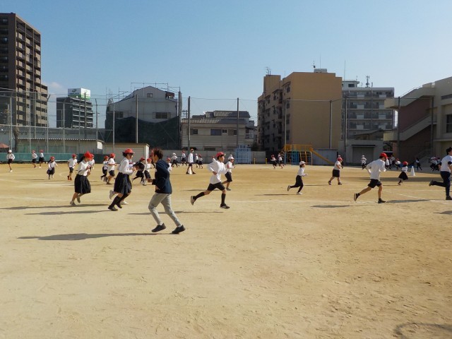先生も一緒に走ります。