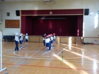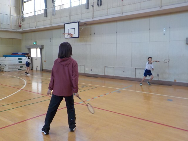 先生とペアでバドミントン。何かい続くかな?