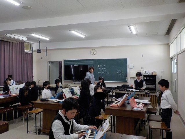 2年 音楽科「こぐまの2月」ピアニカ、木きんの音色と合わせて、みんなで元気よく歌...