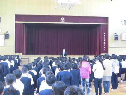 本日児童朝会で本年度の運営委員会の児童に校長先生から任命書が手渡されました。