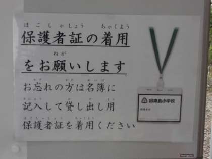 学校にお越しの際は、保護者証の着用をお願いいたします。